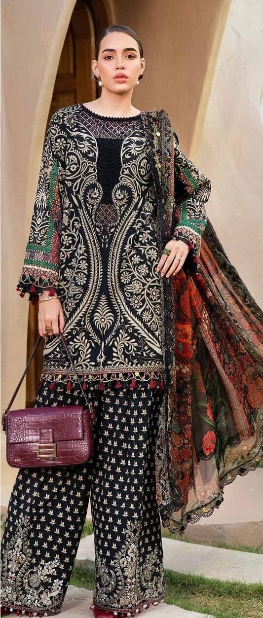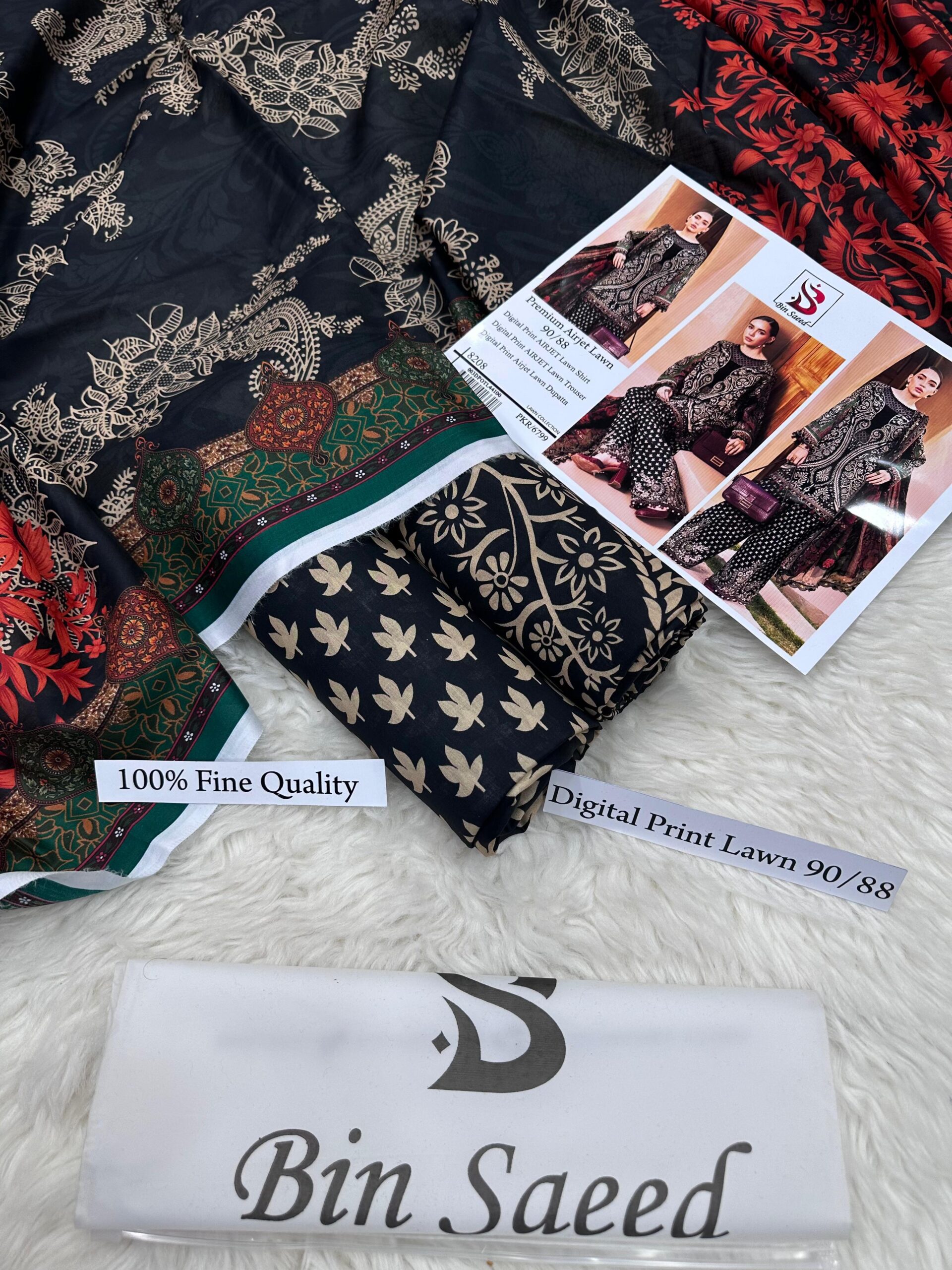 Bin Saeed Premium Airjet Lawn 3 Piece Suit – Elegant Black & Gold Digital Ethnic Print