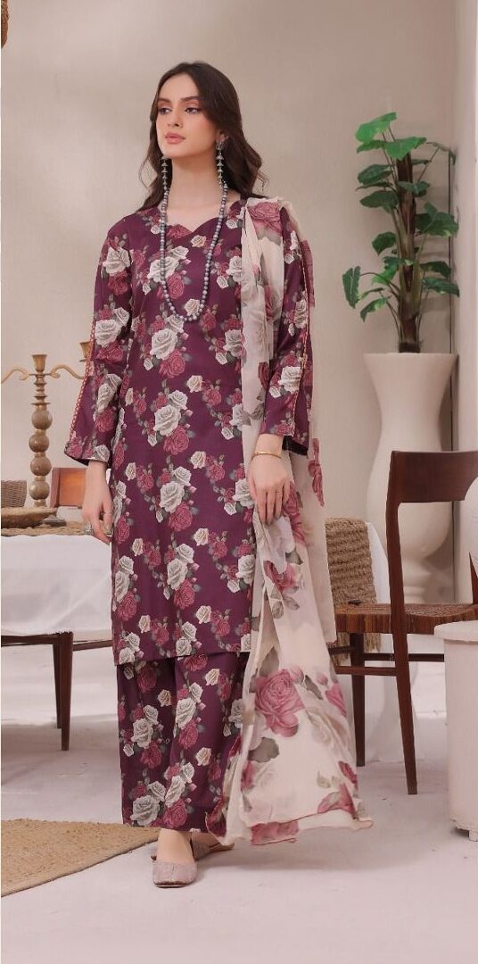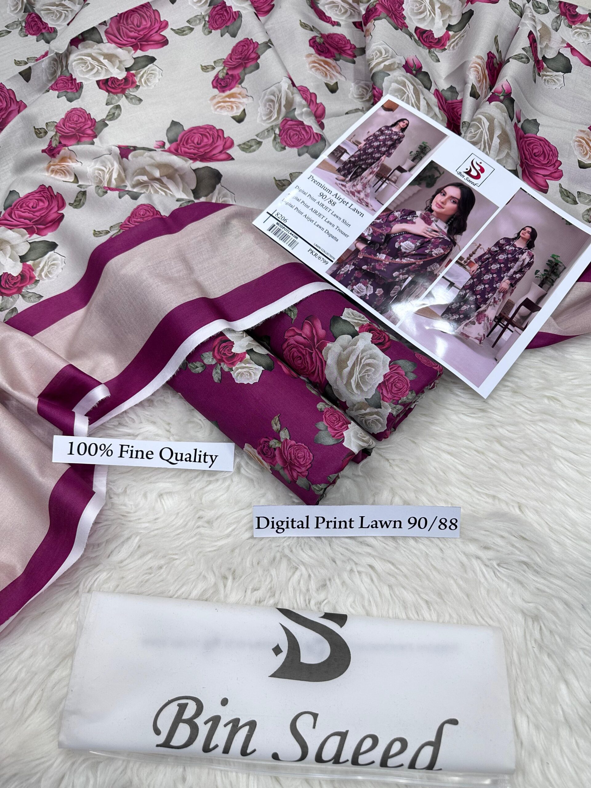 A premium printed airjet lawn suit by Bin Saeed featuring elegant floral digital prints on high-quality airjet lawn fabric.