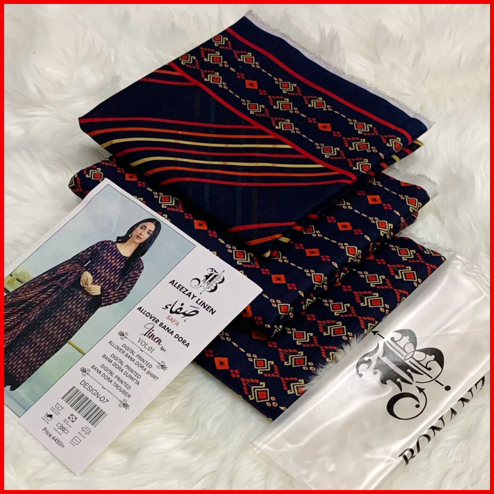 Elevate your winter style with the BONANZA Digital Printed 3PC Bana Doria Linen Suit, featuring premium textured fabric, vibrant digital prints, and a comfortable yet elegant design perfect for all-day wear.