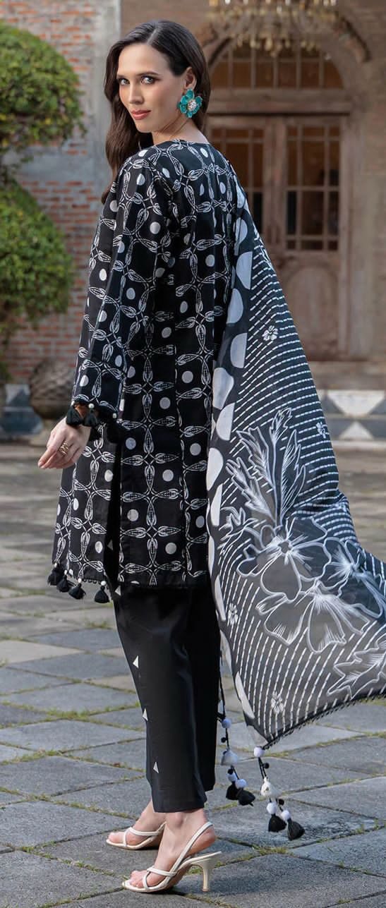 Add a touch of elegance to your summer look with this elegant Black Gul Ahmed Lawn 3 piece  suit, featuring a stunning floral dupatta and digital printed shirt.