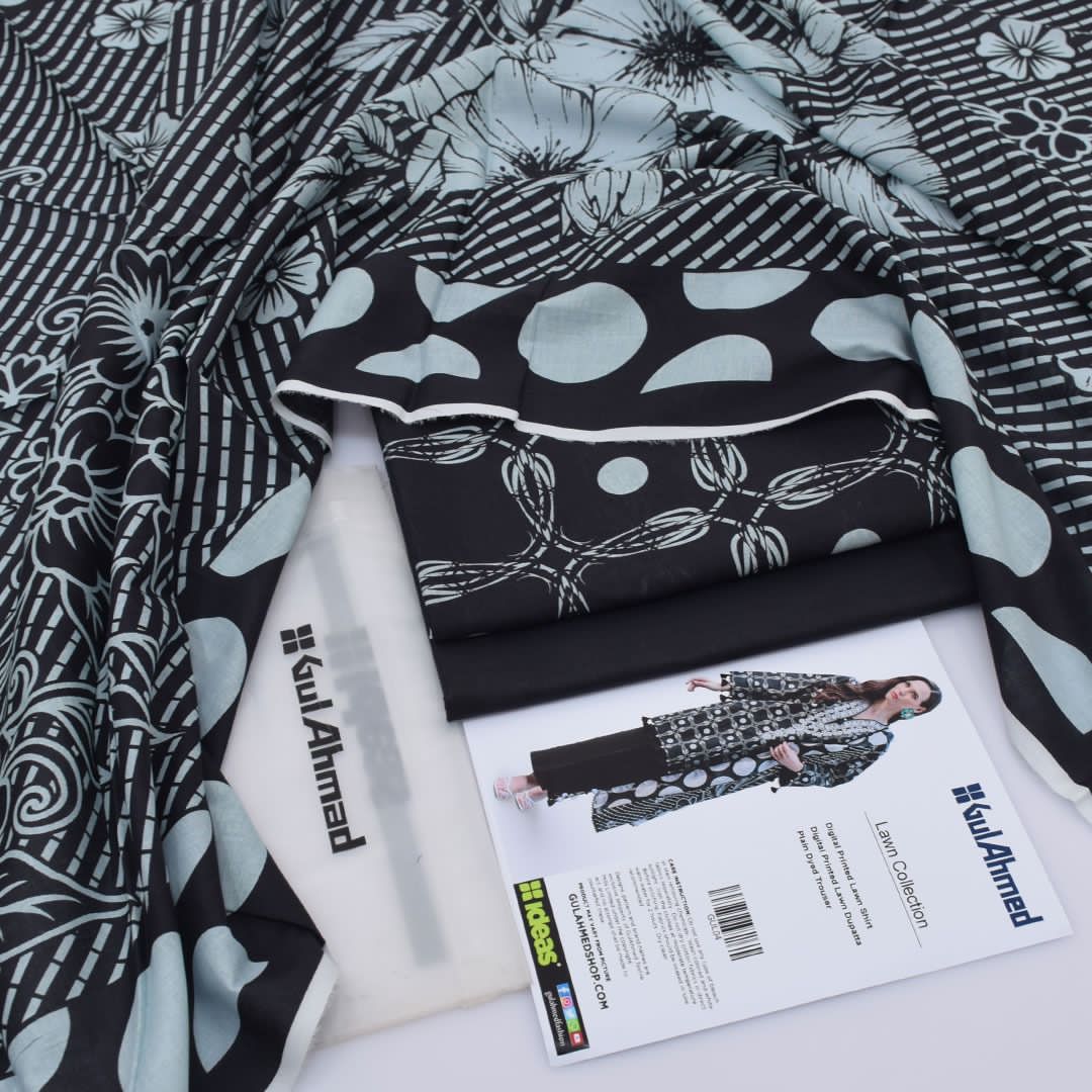 Elegant Black Gul Ahmed Printed Lawn 3 Piece Suit