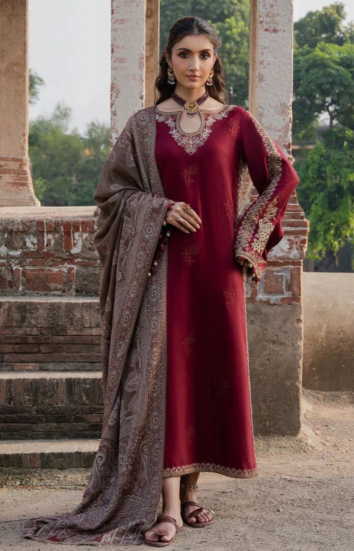 Izel – Premium Dhanak Embroidered 3PC Suit with Printed Shawl