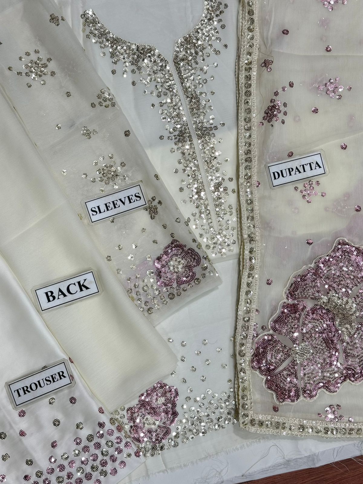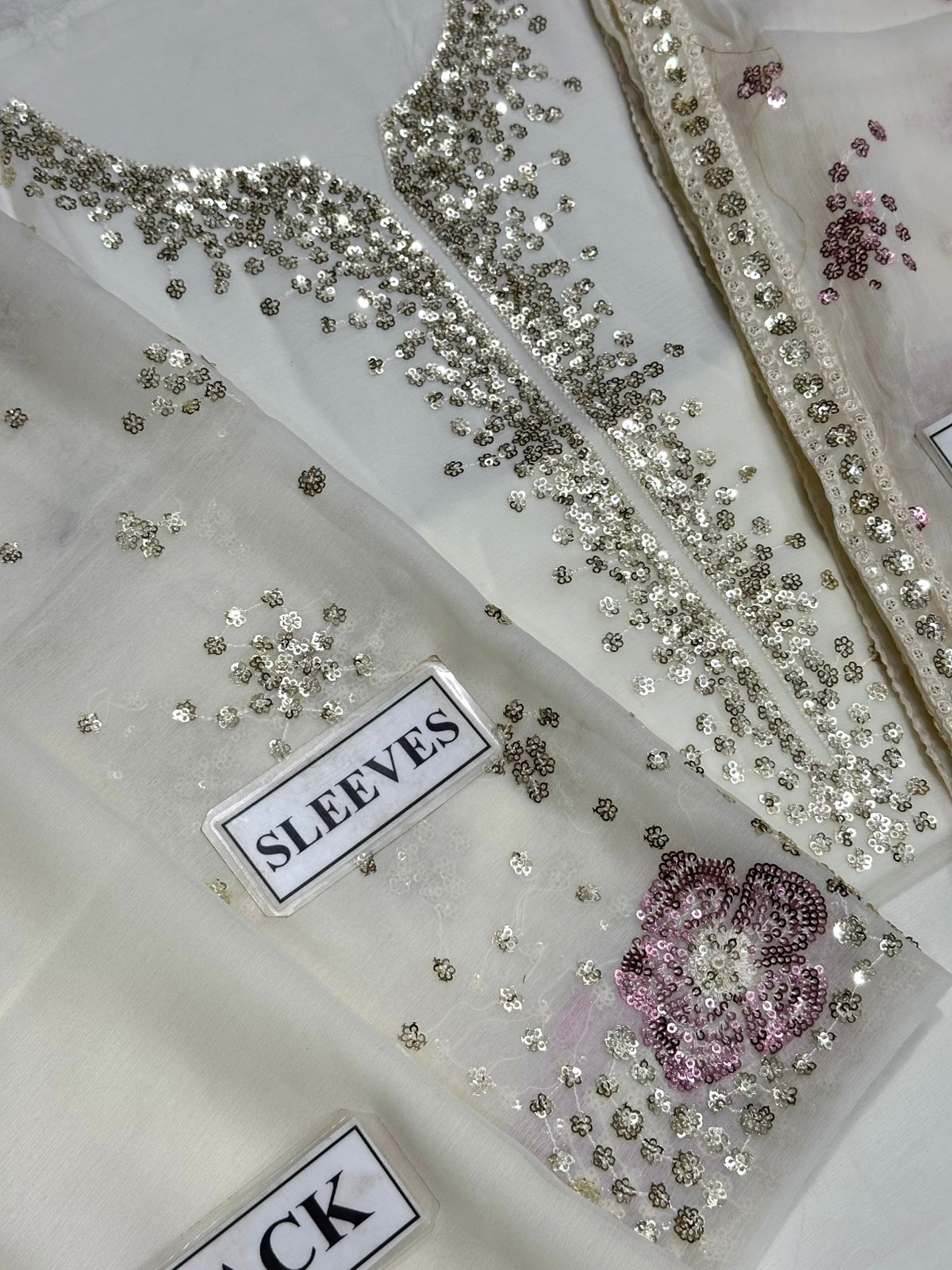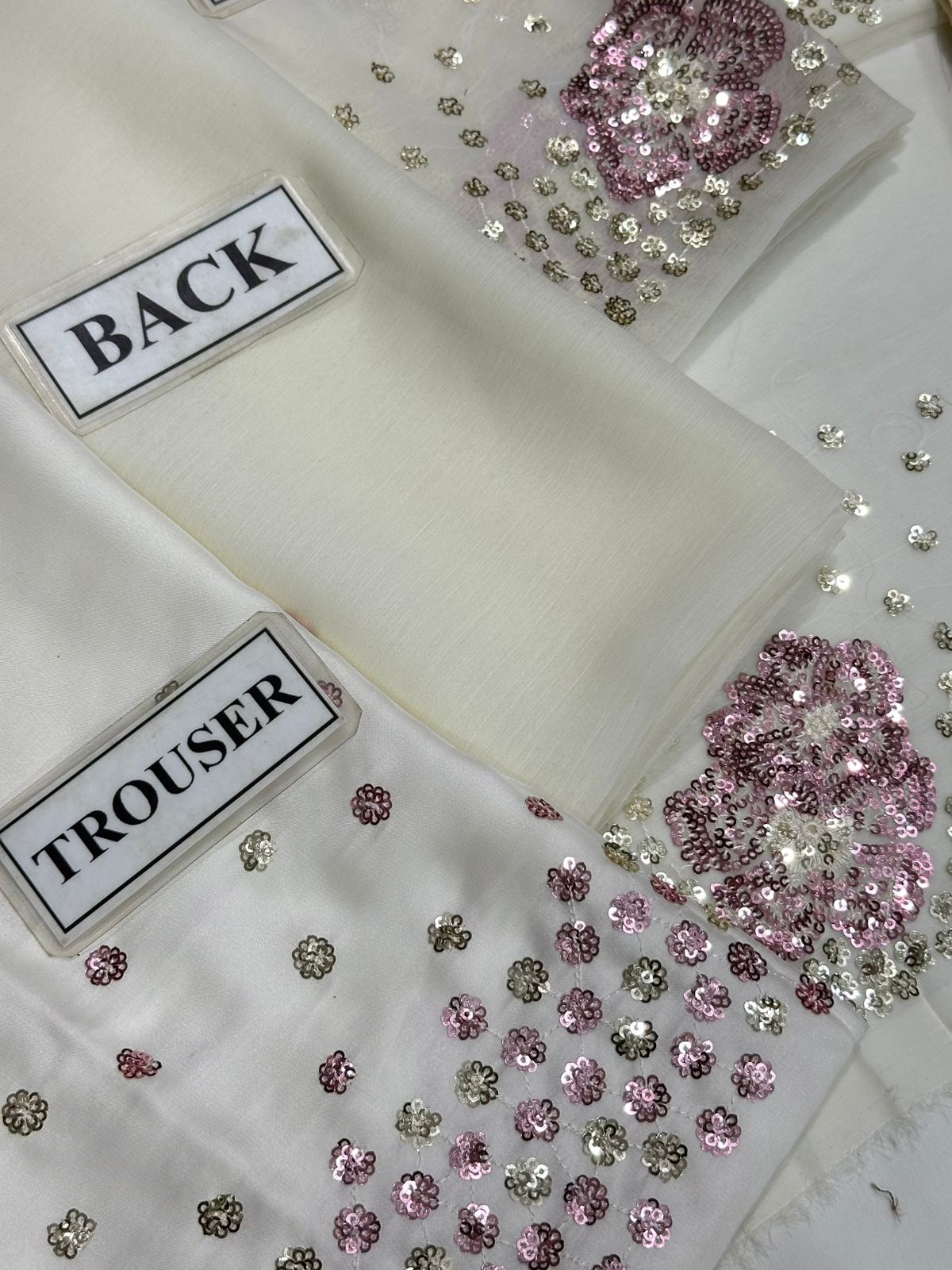 Jazmin Unstitched Chiffon 3PC Suit | Silk Trouser | Sequence Work