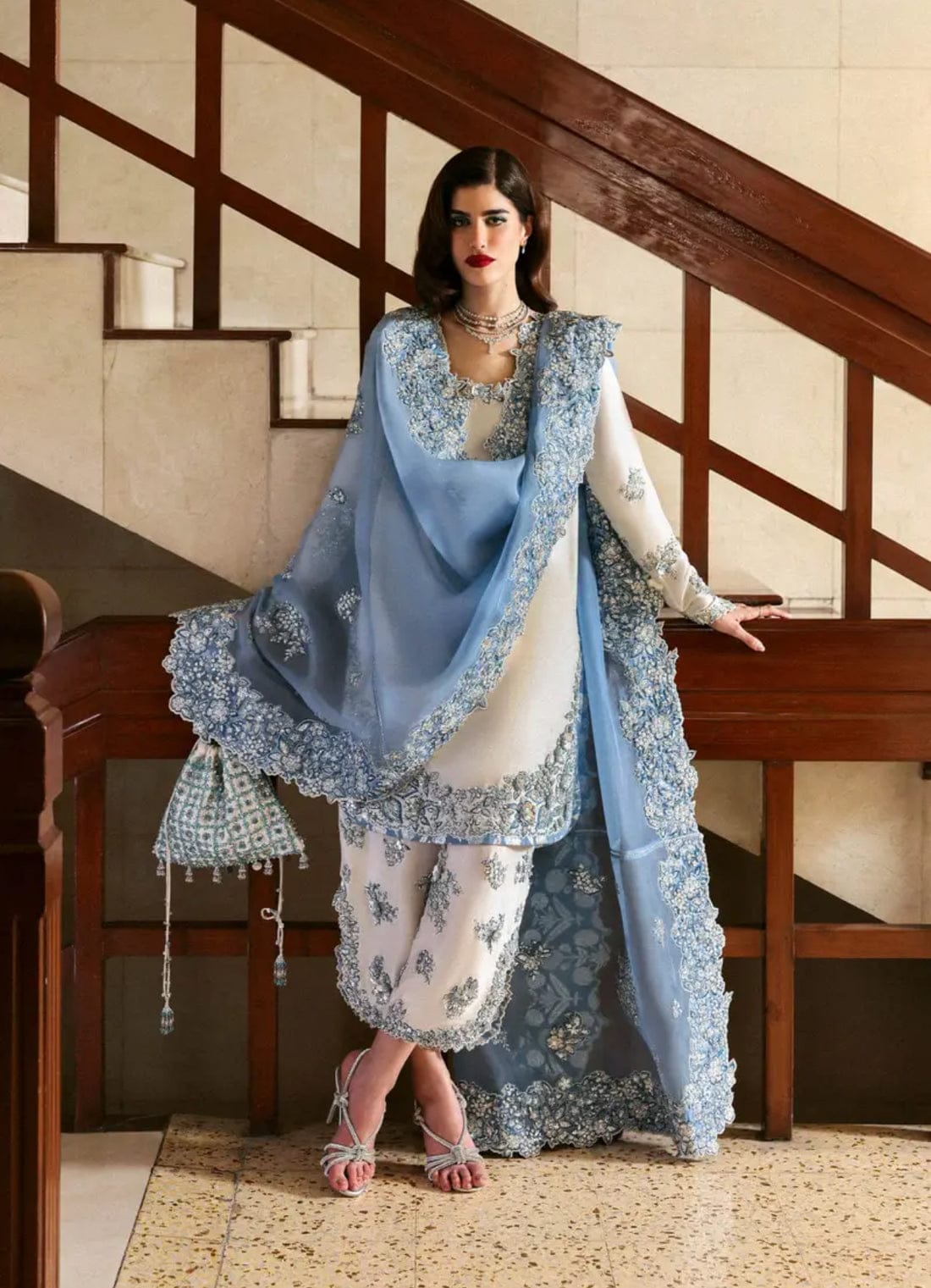 Extras: Includes a matching embroidered pouch for an added touch of sophistication