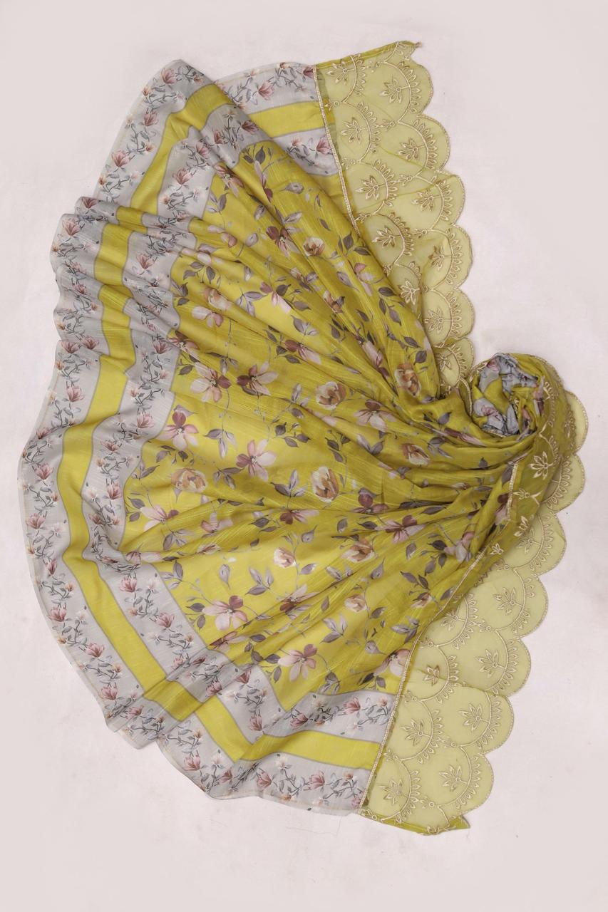 A premium Dhanak unstitched suit featuring full heavy embroidery on front, back, sleeves, and daman, paired with a ready-to-wear digital printed wool shawl.
