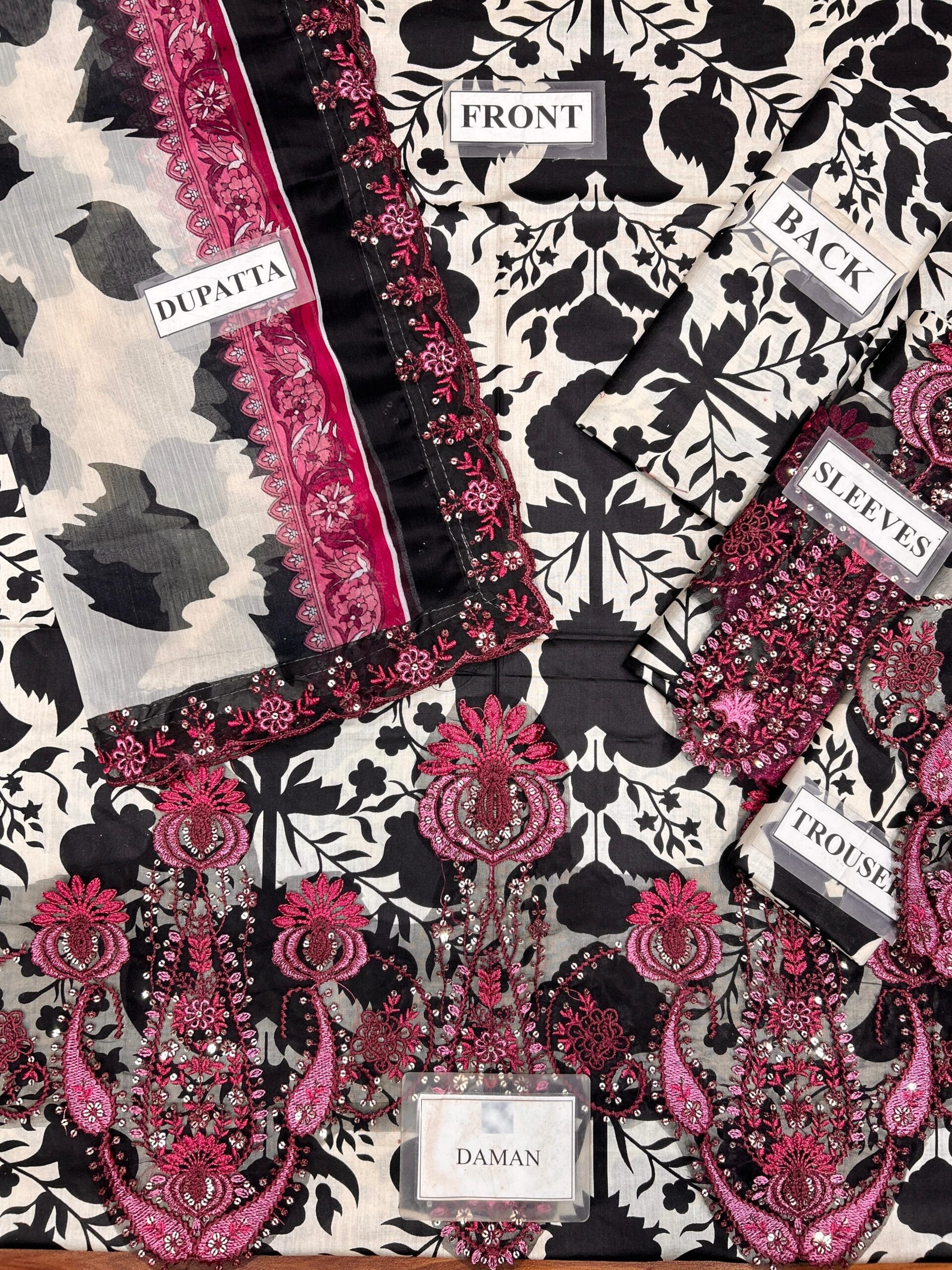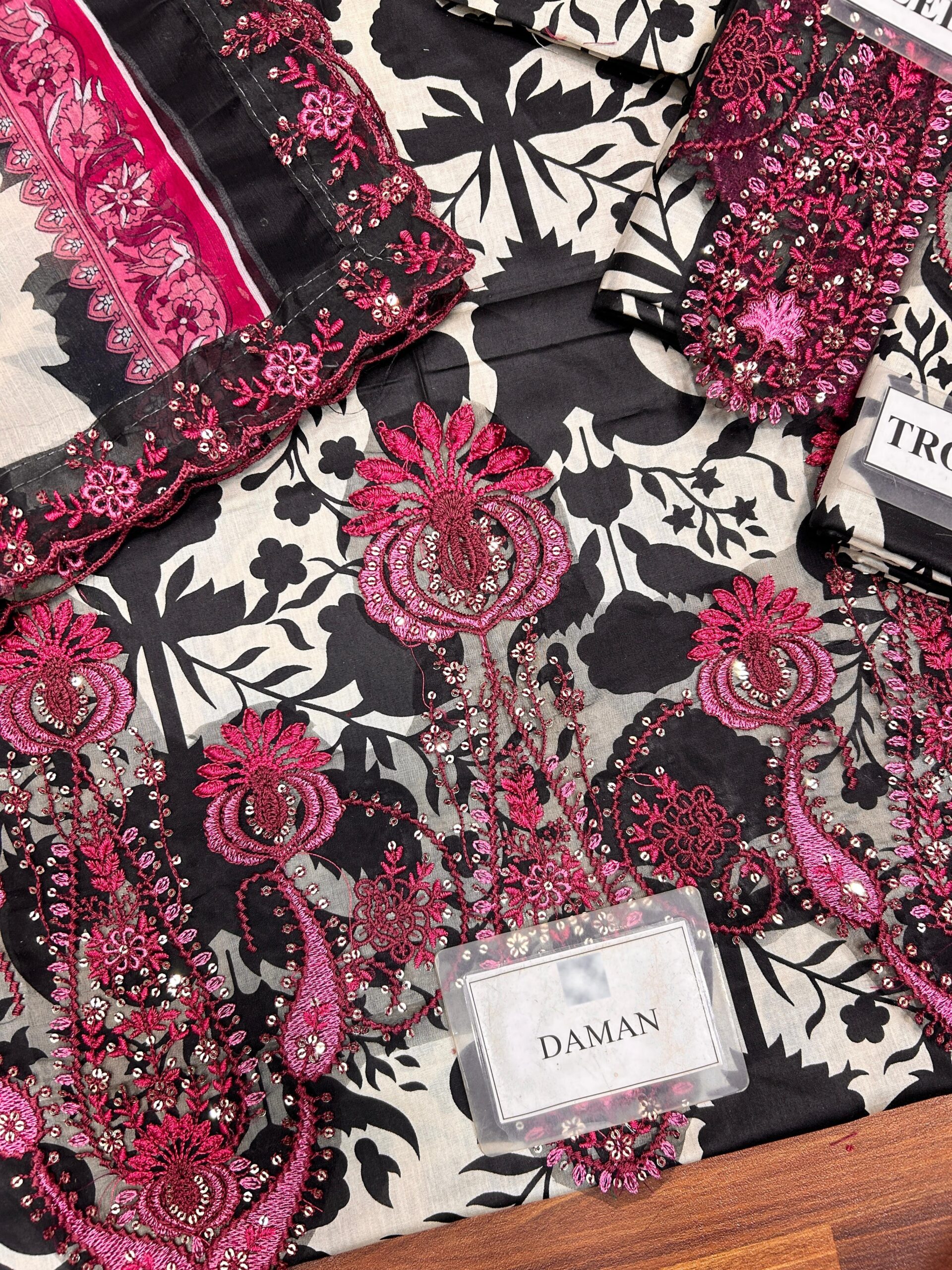 Printed sleeves with heavy embroidered sequence sleeves bunch