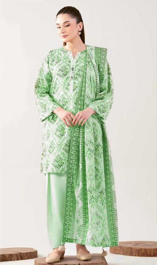 Nishat’s refreshing Mint Green Floral Printed Lawn 3 Piece Suit featuring delicate floral digital prints and a breezy lawn dupatta.