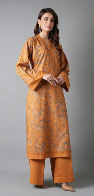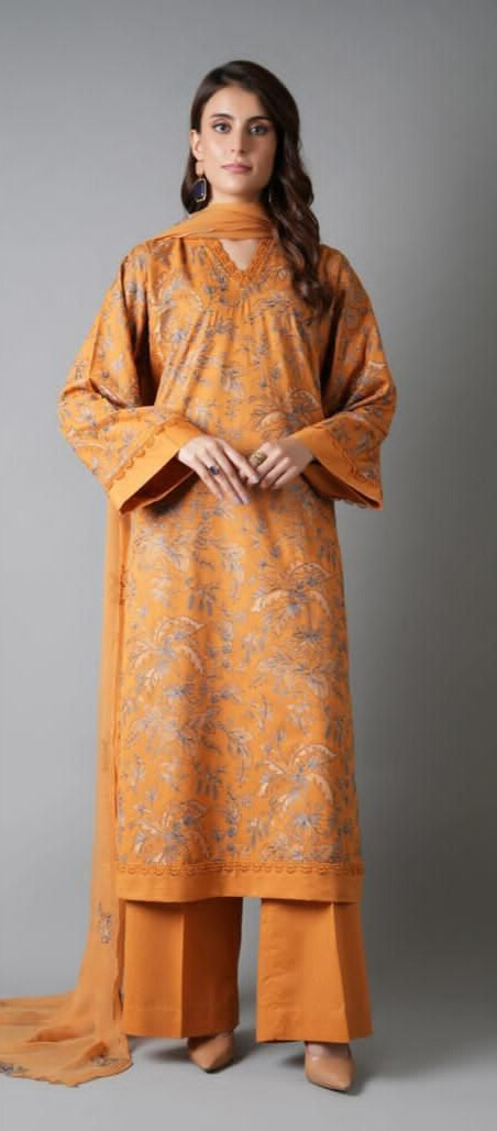 Mustard Yellow Floral Embroidered Lawn 3 Piece Suit Unstitched – Bareeze
