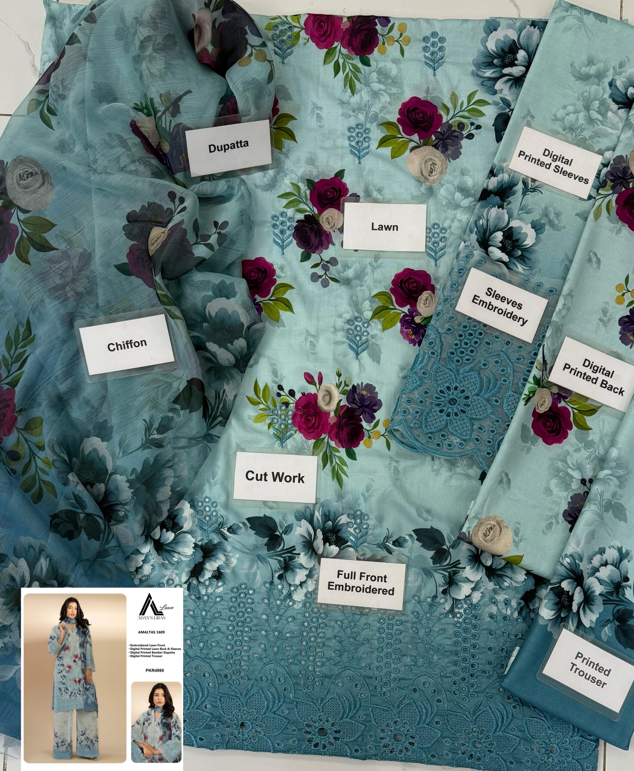 Sleeves: Digital Printed Lawn sleeves with an additional Embroidered Patch.
