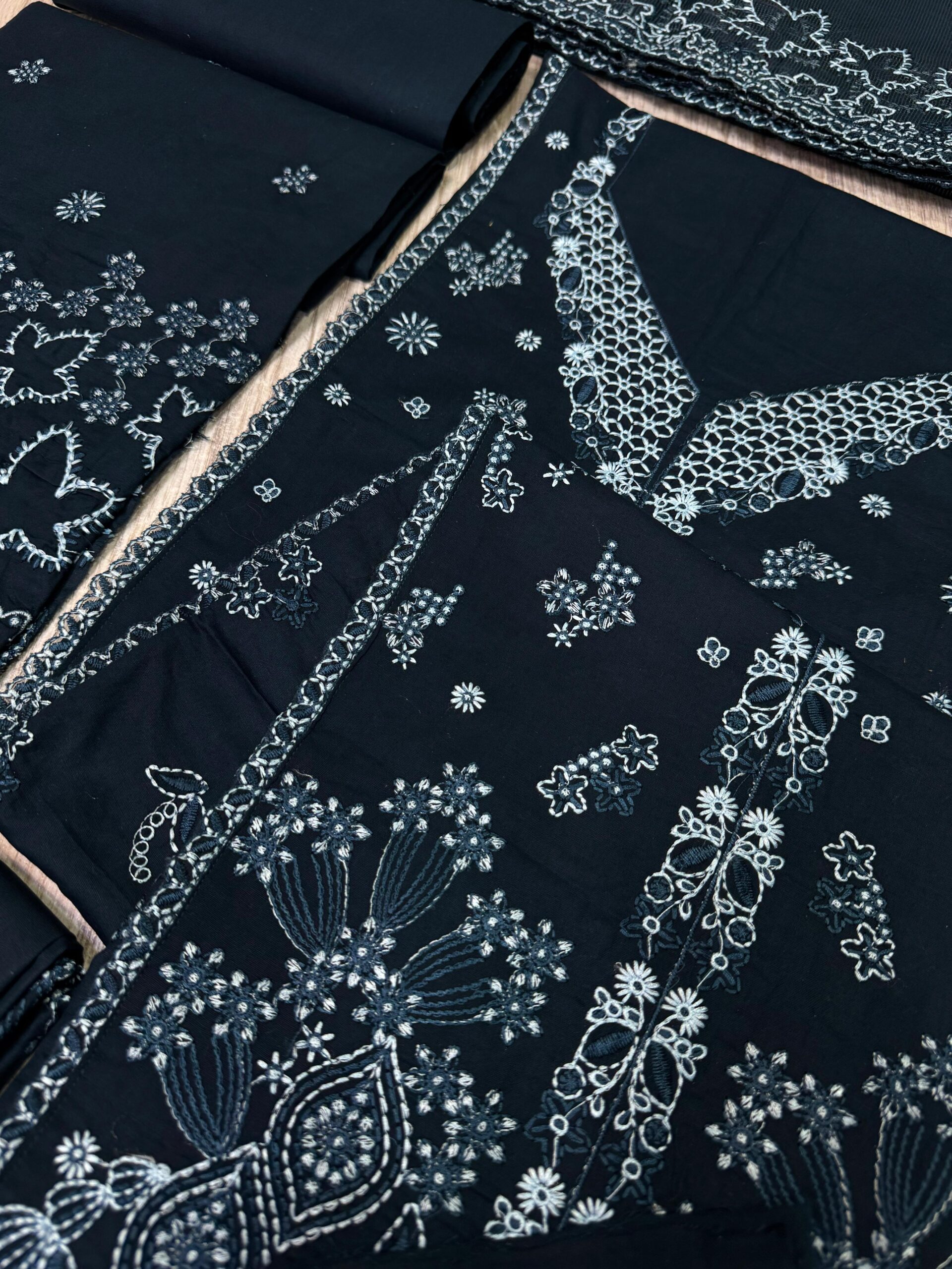 Premium Cambric Cotton Embroidered Unstitched 3PC Suit with Khadi Net Organza Dupatta