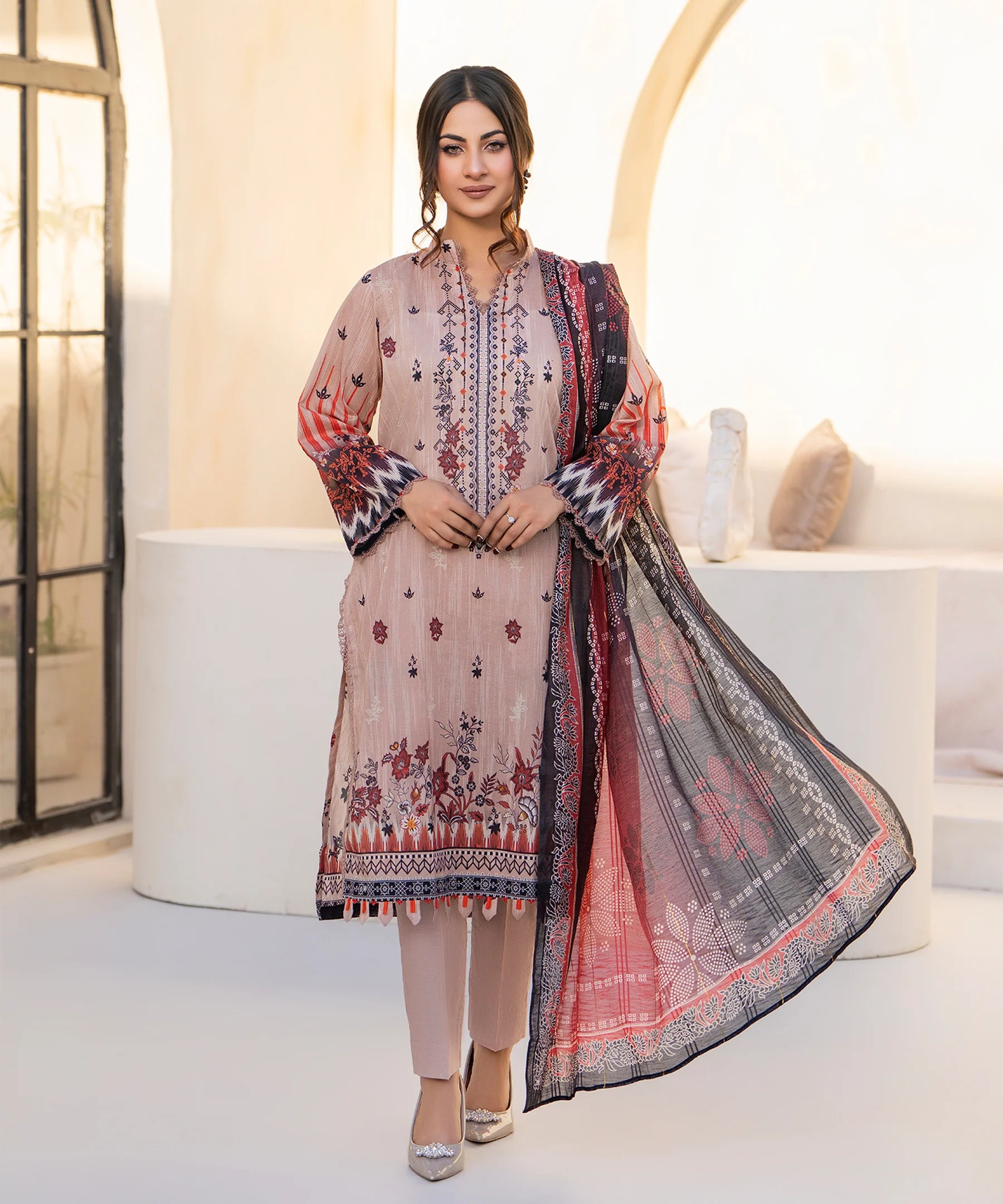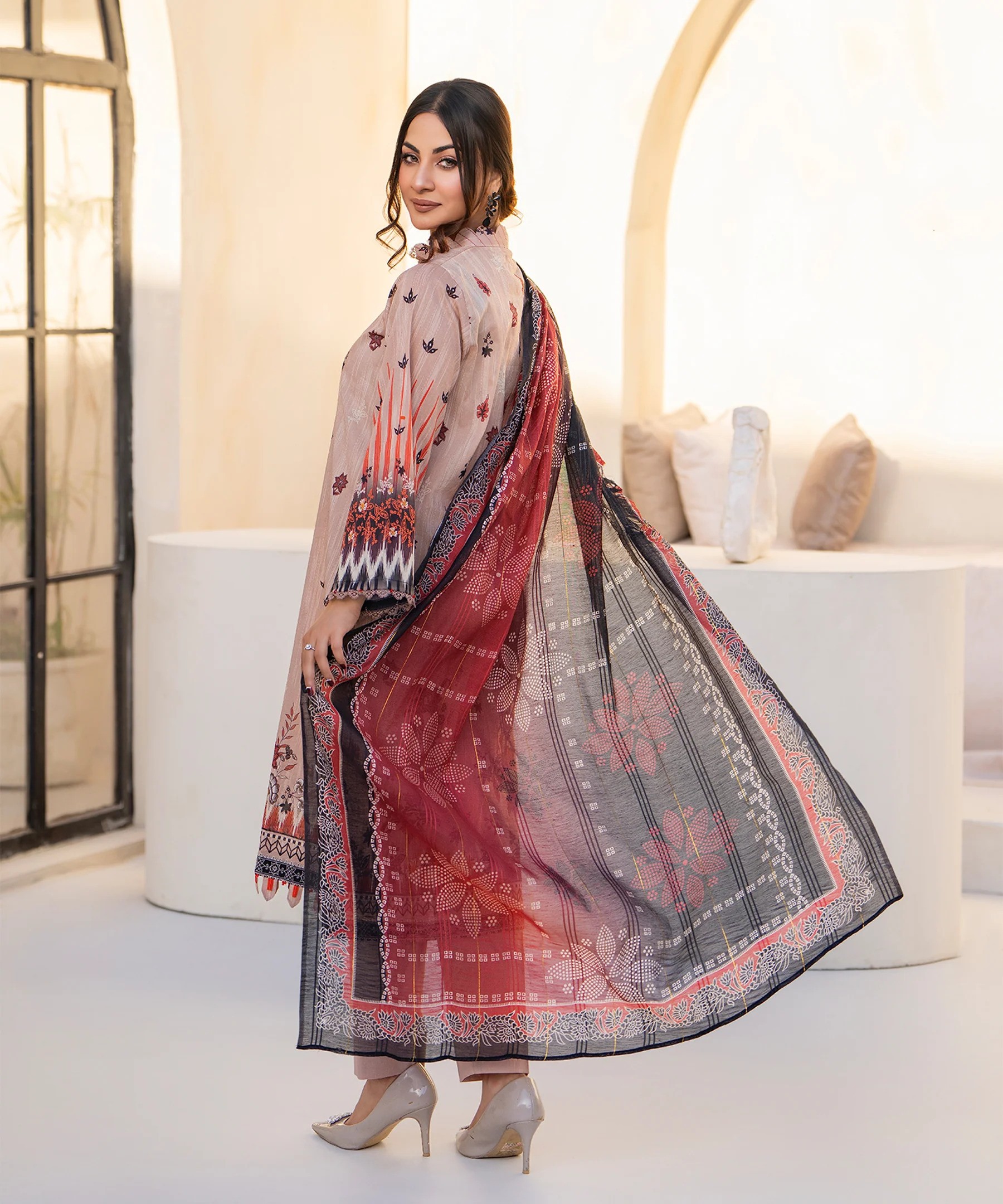 Create your perfect look with this Sitara Studio vibrant 3-piece suit Digital Printed Lawn suit, offering a gorgeous multicolor slub lawn shirt and a breathable lawn trouser. The ensemble is effortlessly elevated by an eye-catching digital printed fancy dupatta.