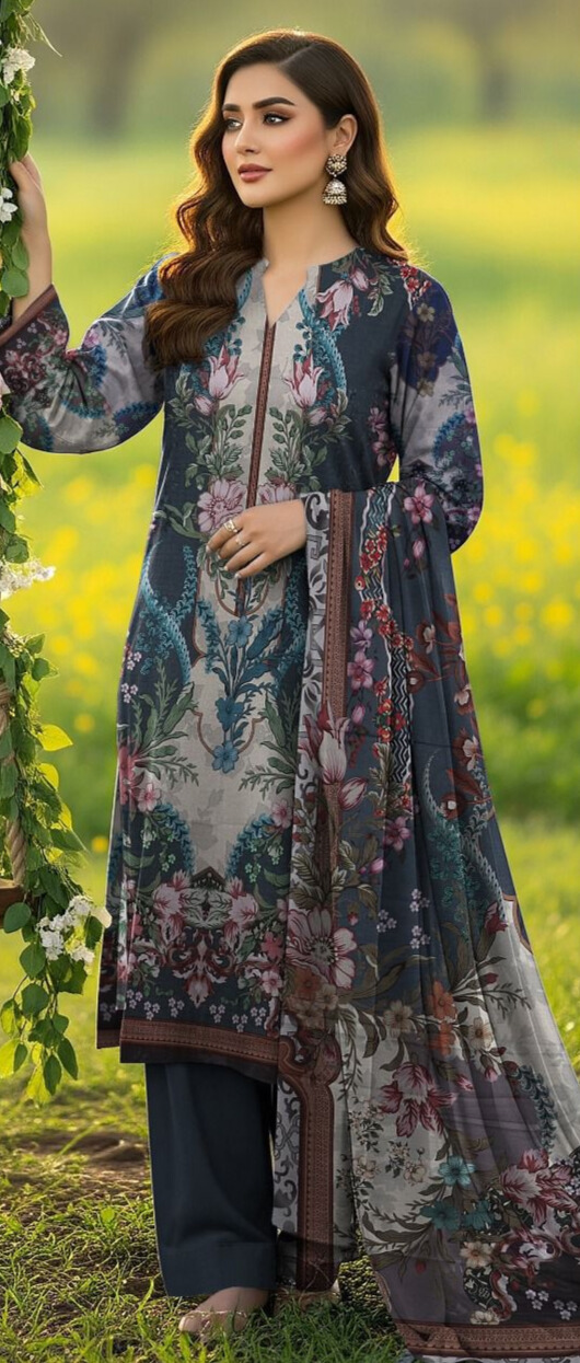Unstitched Banadoria lawn Digital printed 3PC Suit – BL04