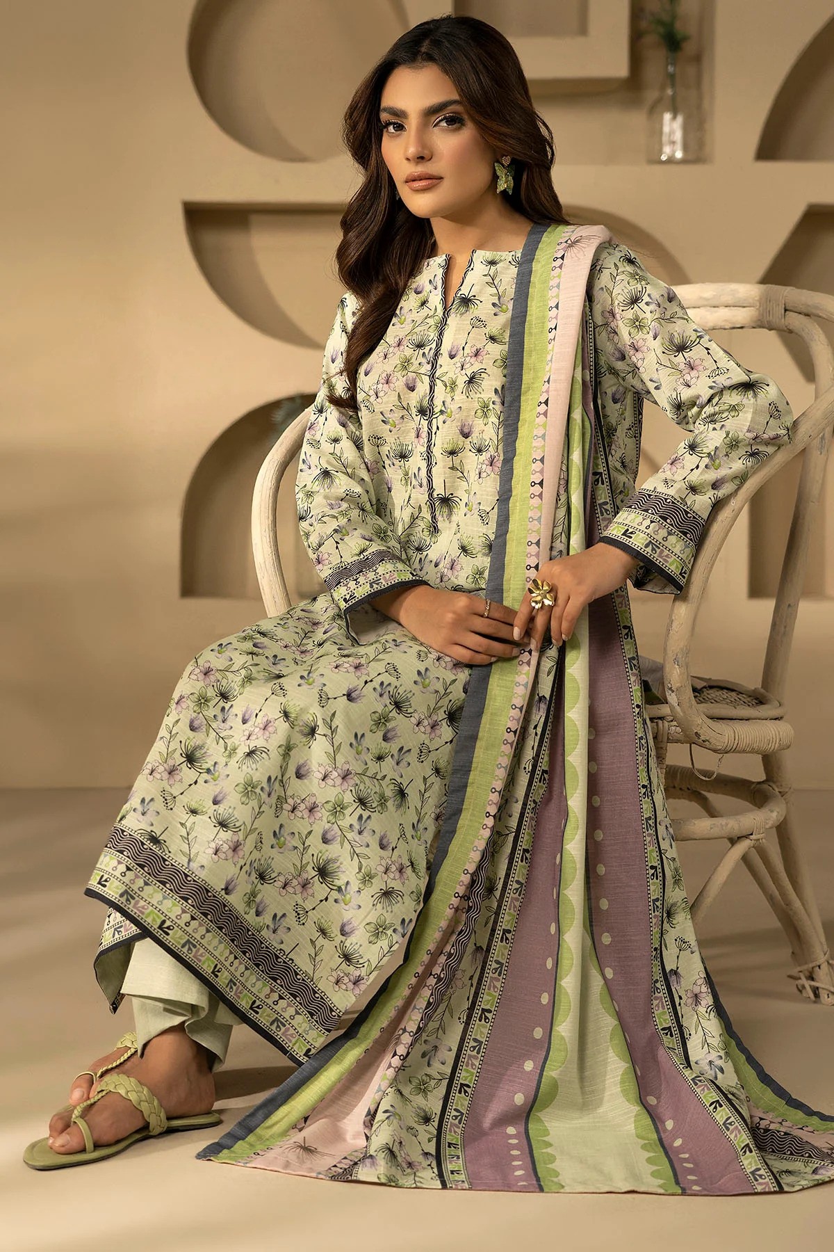 Unstitched Motifz 3-Piece Khaddar Mint Green with floral design printed suit – M-02