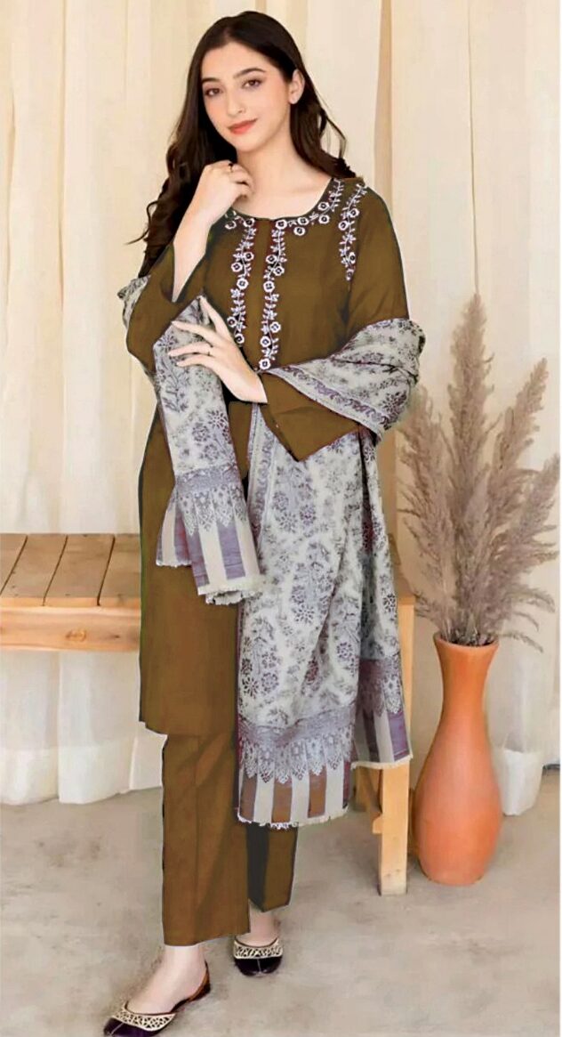 Elevate your summer wardrobe with this elegant 3 Piece Embroidered Lawn Suit , featuring heavy embroidered sleeves and a premium digital printed dupatta.